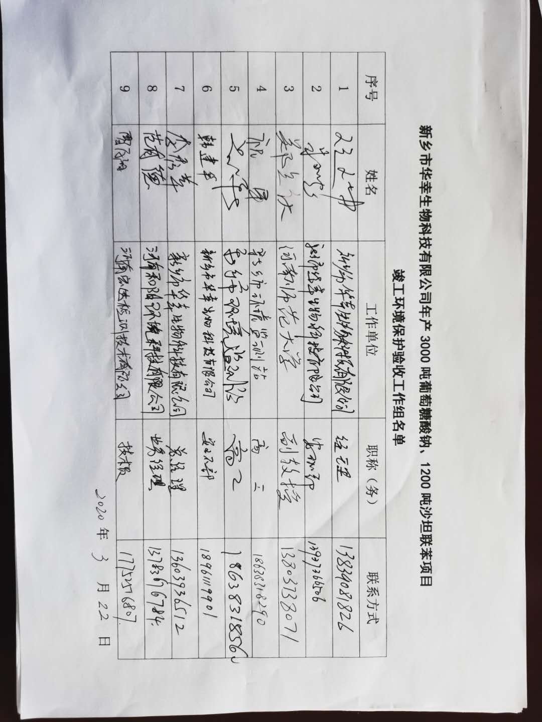 依據(jù)國務(wù)院第682號文頒布的新《建設(shè)項目環(huán)境保護管理條例》和原環(huán)境保護部國環(huán)規(guī)環(huán)評[2017]4號文公告的《建設(shè)項目竣工環(huán)境保護驗收暫行辦法》的相關(guān)要求,新鄉(xiāng)市華幸生物科技有限公司于2020年1月20日在新鄉(xiāng)市華幸生物科技有限公司廠區(qū)召開會議,對新鄉(xiāng)市華幸生物科技有限公司年產(chǎn)30000噸葡萄糖酸鈉、1200噸沙坦聯(lián)苯項目進行竣工環(huán)境保護驗收。會議成立了驗收工作組,成員由建設(shè)單位新鄉(xiāng)市華幸生物科技有限公司、驗收檢測單位河南和陽環(huán)境科技有限公司、河南宏達檢測技術(shù)有限公司的代表及邀請的技術(shù)**組成(驗收工作組名單附后)。會前,驗收工作組成員對工程主要生產(chǎn)設(shè)施、環(huán)保設(shè)施進行了現(xiàn)場檢查,會議聽取了建設(shè)單位關(guān)于項目建設(shè)情況及竣工環(huán)保工作的情況介紹、竣工環(huán)保驗收監(jiān)測報告編制單位關(guān)于驗收監(jiān)測工作技術(shù)匯報,查閱了竣工環(huán)保驗收監(jiān)測報告,核實了有關(guān)資料。經(jīng)過認真審議與討論,形成如下驗收意見: